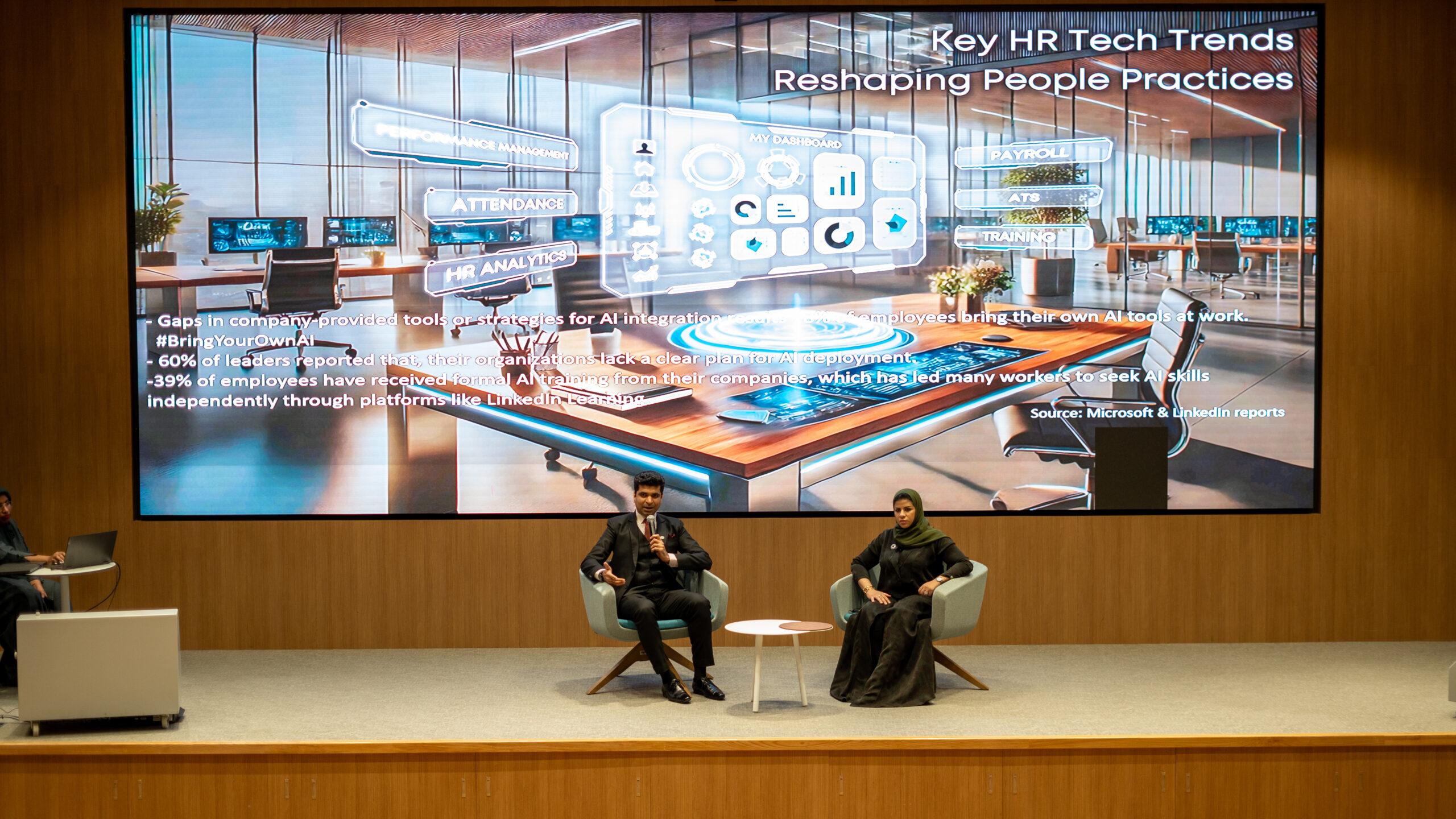 We were joined by Marwa Al Kharusi, Senior VP of HR & Admin at Ominvest, and Dinesh Gagnani, Head of Learning & Development at Takaful Oman, who shared their valuable insights on the growing impact of AI in HR. The session sparked a lively and stimulating conversation about how technology is reshaping HR practices, with a particular focus on the evolving role of AI in the workplace.